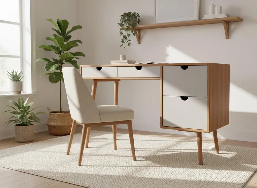 An Office Work Desk with Drawer is a functional workspace table designed for home offices, study areas, or professional workstations. It features one or more built-in drawers for convenient storage of... Read More